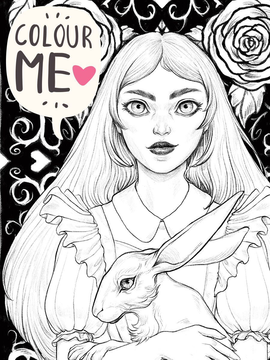 Hi guys! So many of you asked for fairy tales and animals, and since we are all going a bit mad from being stuck indoors, I thought Alice in Wonderland would be a fitting theme for this free colouring pages event.